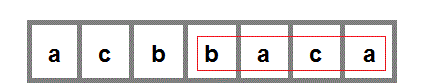 To help illustrate this approach, I use a different example: S = “acbbaca” and T = “aba“. The idea is mainly based on the help of two pointers (begin and end position of the window) and two tables (needToFind and hasFound) while traversing S. needToFind stores the total count of a character in T and hasFound stores the total count of a character met so far. We also use a count variable to store the total characters in T that’s met so far (not counting characters where hasFound[x] exceeds needToFind[x]). When count equals T‘s length, we know a valid window is found.