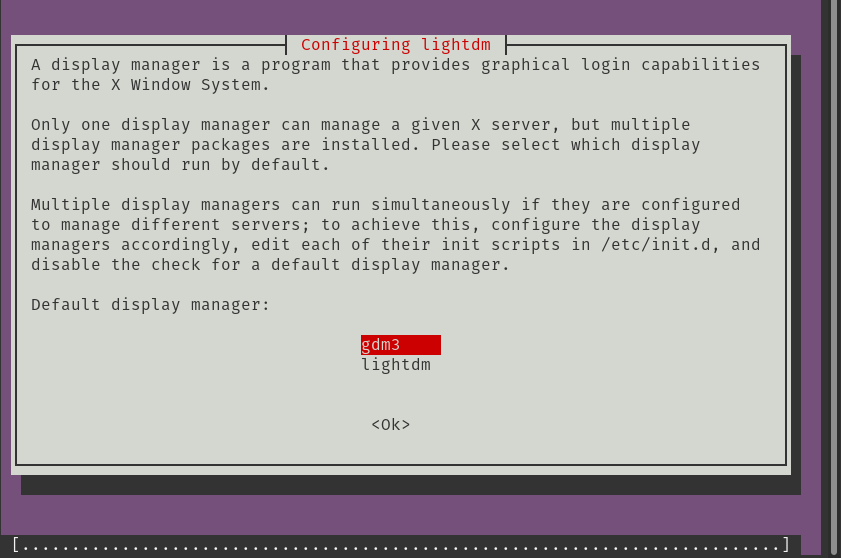 如果跳出 config lightdm 的话,不用管,继续使用 gdm3 就好。